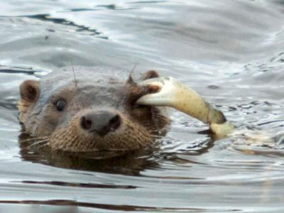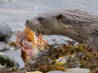 水獭吞下浑身鳍刺都有毒的狮子鱼