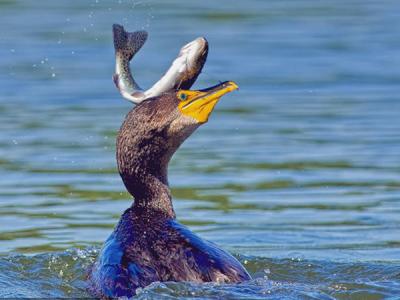 美国一只鸬鹚捕食鳟鱼 (神秘的地球)据东方IC:美国加州长滩岸边一只鸬鹚捕...