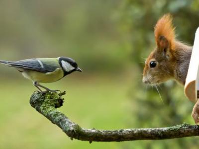 德国蓝山雀遭厚脸皮松鼠抢占地盘