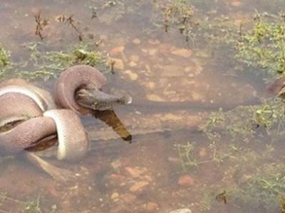 澳大利亚昆士兰州3米长蟒蛇猎杀鳄鱼