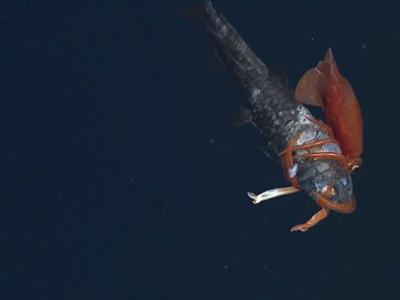拍到小乌贼捕食大鱼的罕见一幕