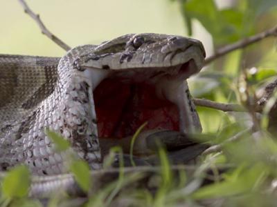 博茨瓦纳一条非洲岩蟒成功吞食一只黑斑羚