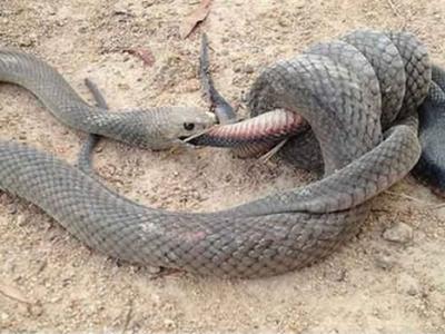 澳洲一条棕伊澳蛇吞噬一条赤腹伊澳蛇