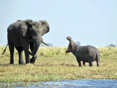 非洲博茨瓦纳:河马咆哮大象