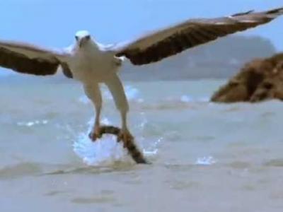 海雕猎捕剧毒海蛇空中险遭反咬