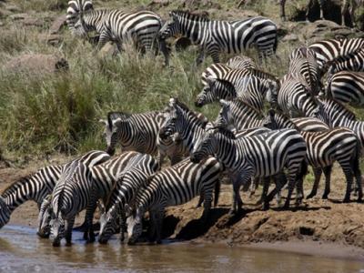 肯尼亚马赛马拉国家保护区小斑马渡河遭鳄