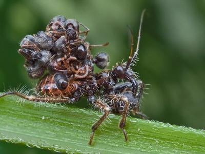 食肉虫猎蝽捕杀蚂蚁后将尸体背到背上当伪装