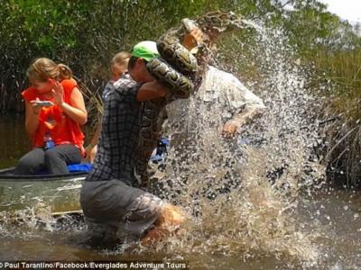 英国《每日邮报》4月11日刊登了一组男子大战蟒蛇的照片。报道称,照片中的这名男子...