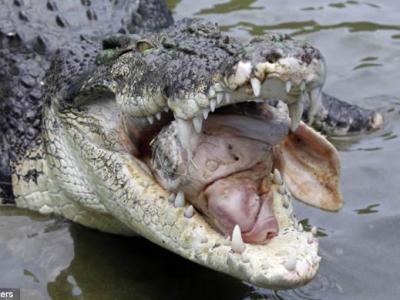 摄影师在马尼拉的一座鳄鱼公园内刚好抓拍到这条咸水鳄的进食瞬间。这只饥饿的爬行动...