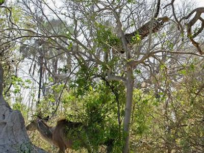 博茨瓦纳一只美洲豹从9米高树干处跳下扑