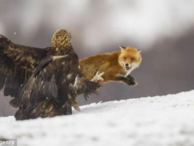 金雕赶走抢食狐狸 作为一种动物,它们因是大自然的清道夫而声名狼藉,因此,这只...