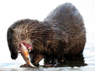 英国水獭不畏严寒跳入河流捕鱼 英国水獭不畏严寒跳入河流捕鱼 英国水獭不畏...