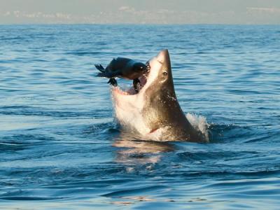 南非福尔斯海湾大白鲨捕食海豹 南非福尔斯海湾大白鲨捕食海豹 南非福尔斯海...