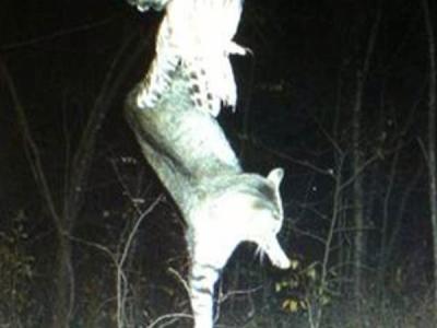 美国明尼苏达州上演猫头鹰捕食家猫