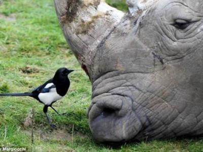 英国犀牛鸟畅快享用新鲜犀牛肉