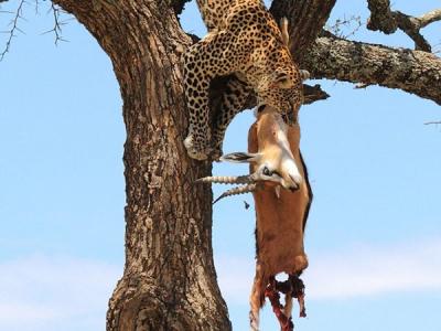 肯尼亚花豹树上吃瞪羚