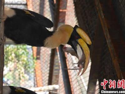 云南野生动物园双角犀鸟捕老鼠