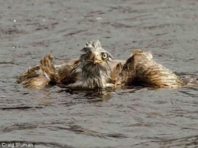 英国威尔士西部的阿伯里斯特威斯,一只红色鸢鹞鹰因贪嘴不幸落水,落水后遭到一只...