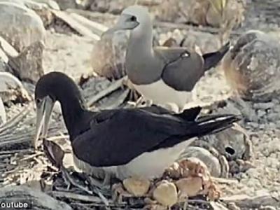 螃蟹袭击鲣鸟巢穴遭反击 被迫“壮士断臂”