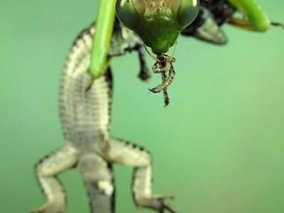 螳螂猎食蜥蜴
