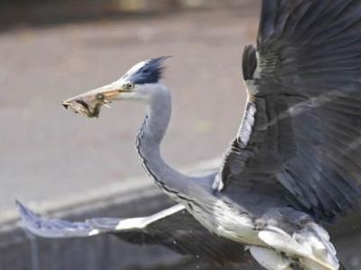 苍鹭捕食小鸭子