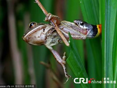 青蛙“蛇口脱险”