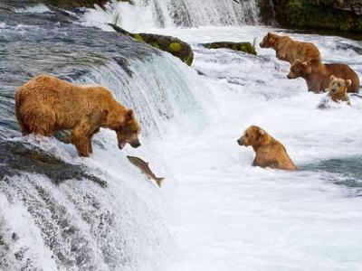 灰熊捕食大马哈鱼