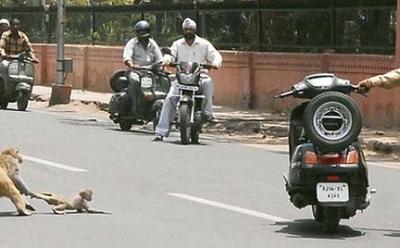 可怜的小猴先被一辆电动车碾过,后又遭到一条野狗攻击。 猴妈妈首先冲上来攻击...