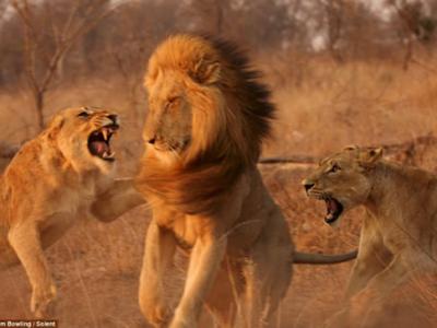 很少有人能看到雌狮攻击雄狮的场面 一般情况下,体型及力量都处于劣势的雌狮...