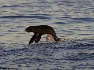 鲨鱼突然袭击,成功捉到来不及躲避的小海豹,但是在它还没咬紧的时候,小海豹趁机...