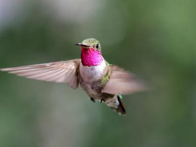 一只雄性宽尾煌蜂鸟在科罗拉多州飞翔──这是色觉实验的一部份...