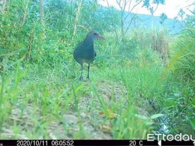 台东青农意外在生态摄影机捕捉到超罕见台湾特有亚种“灰胸秧鸡”来稻田造访(神秘的...