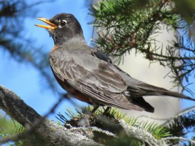天气变热雪提早融化 旅鸫(美洲知更鸟)