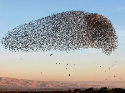 中东约旦河西岸椋鸟群飞令人目不转睛 队