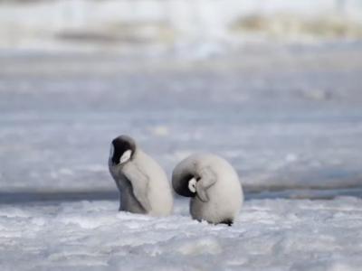未长出羽毛的皇帝企鹅雏鸟尚未可游泳。卫星图像显示,皇帝企鹅...