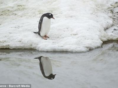 南极洲耐可峡湾自恋企鹅盯着自己倒影10分钟(神秘的...