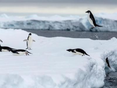 南极洲耐可峡湾自恋企鹅盯着自己倒影10分钟