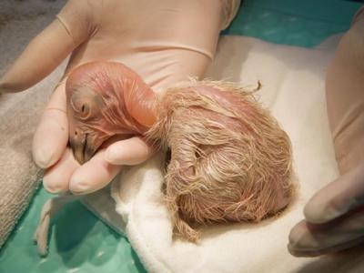美国俄勒冈动物园社交网站发极危等级加州神鹫(California condor)宝宝照 翅膀...
