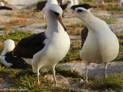 世界最长寿的鸟——64岁信天翁“智慧”(左)回到故乡美国中途岛(Kiah Walker/U...