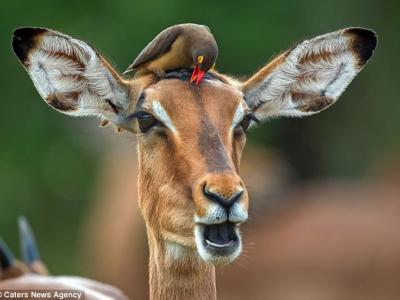 南非克鲁格国家公园红嘴牛椋鸟为黑斑羚挠痒痒 (神秘的地球报道)据环球...