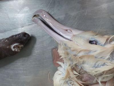 新西兰海岸发现一只吞食鲨鱼后死去的信天翁