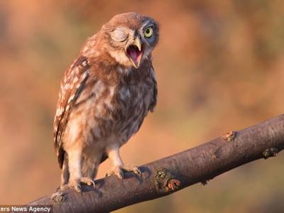乌克兰摄影师Andrew Kay抓拍到一只小猫头鹰向他挤眉弄眼的滑稽模样 (神秘的...