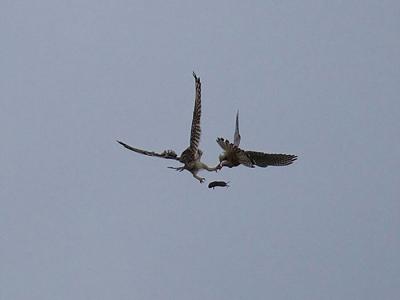 英国猫头鹰捉到田鼠却遭红隼半空截劫 结