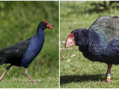 4只南秧鸡(右)被误当成紫水鸡(左)而遭射杀。 (神秘的地球报道)新西兰政府...