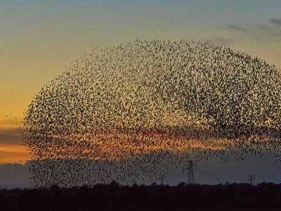 英国卡莱尔市区上空近日出现成千上万只八哥鸟集体迁徙的自然景象 它们成群结队...