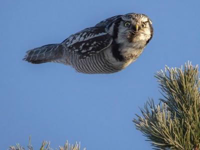 芬兰摄影师拍摄到猫头鹰边滑翔边冷眼盯着