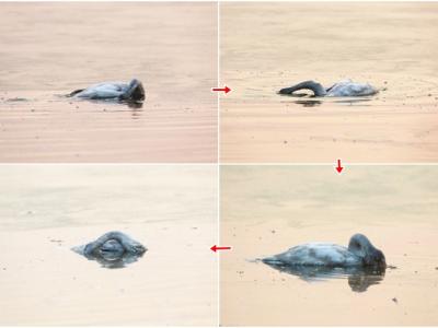 小天鹅不停撞击冰块,并将头埋入湖水下,最后一动不动,静止在湖面。 小天鹅将...