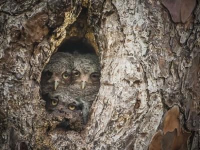 这只猫头鹰的羽毛图案看上去和树皮非常像,它完美地藏身在树干里,真是奇妙。 (...