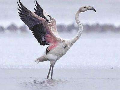 新疆石河子罕见拍到火烈鸟照片