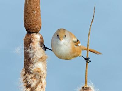 文须雀枝头劈叉做“体操” (神秘的地球)据中新网:一位摄影师日前拍摄了一只小...